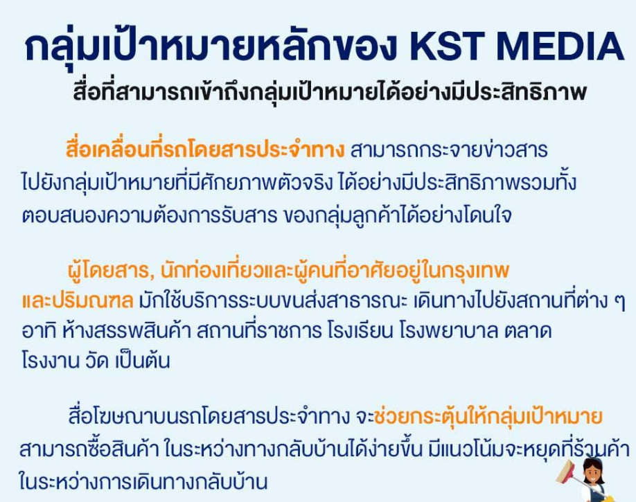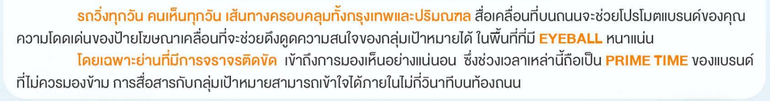 ดังนั้น สื่อโฆษณาเคลื่อนที่บนรถโดยสารประจำทางจึงตอบโจทย์ธุรกิจ ที่ต้องการโปรโมทสินค้าและบริการให้เป็นที่รู้จักในวงกว้าง